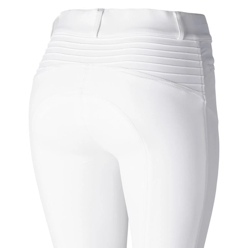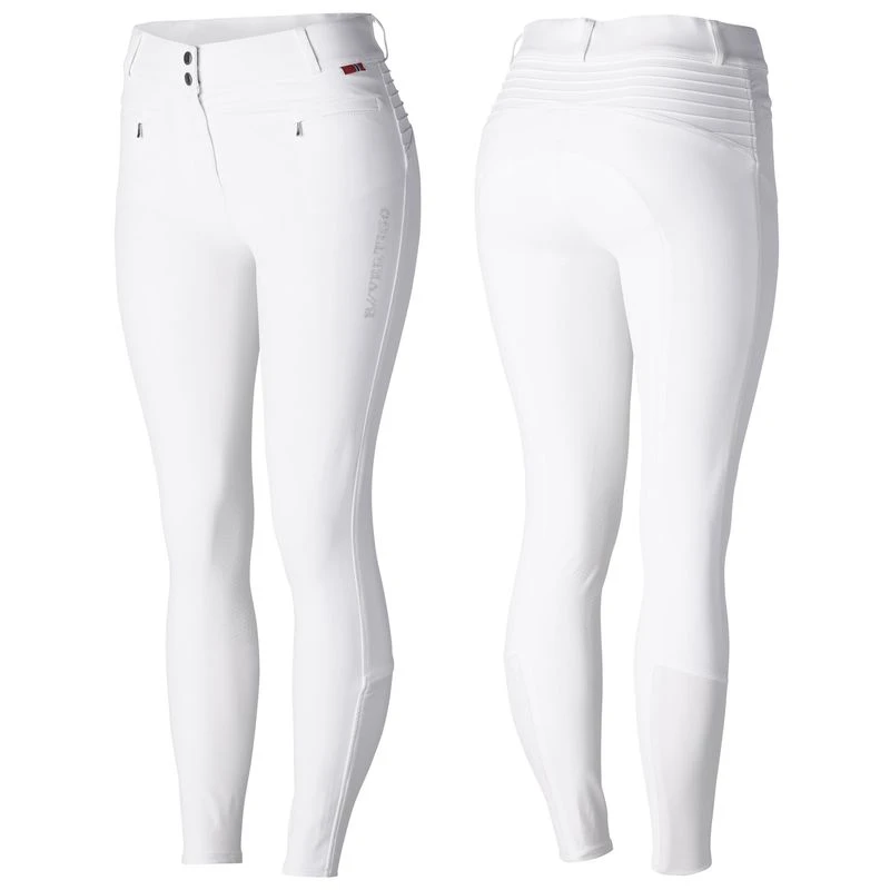 The new B Vertigo Drea breeches make a classic statement. Their great fit with the mid to high waist makes them super flattering. The pleat detail on the back creates a special elegance. The silicone knee patch ensures movability in the saddle. A sparkly crystal logo on the thigh completes the look.