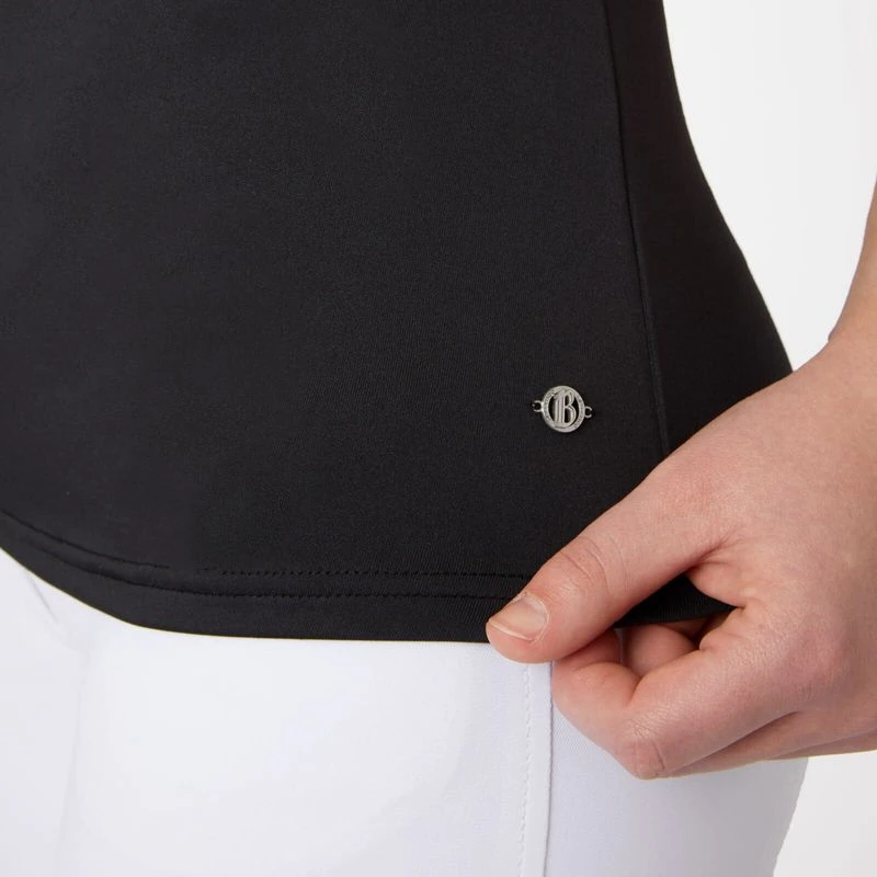 The B Vertigo Kayla show shirt is made of breathable quick drying fabric, which makes it super comfortable to wear even on hot summer days. The beautiful tone to tone lace front does not only create a stunning look, but adds to the breathabilty. For easy on and off the shirt has a half zip at the front. A tonal logo embroidery below the lace tops off this classic design.