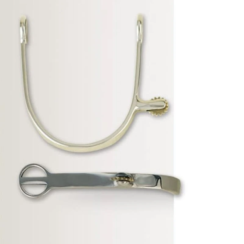 Helps aid in giving leg signals without the rider having to turn the heel in to the horse. Lost wax cast and hand polished from the highest grade of 18/8 Stainless Steel.