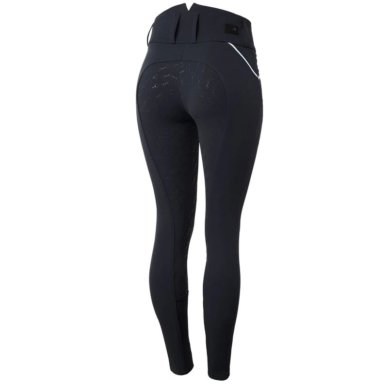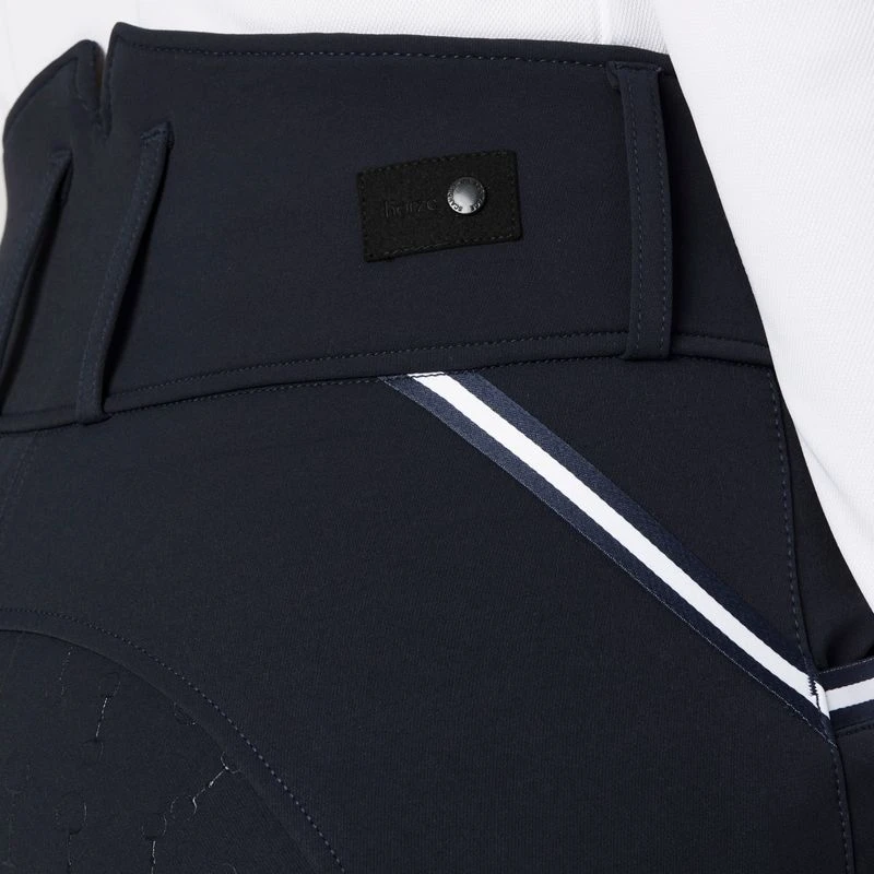 Horze Della Breeches are equipped with a high waist and designed in classic shape and colors. Contrast piping looks flattering, and the silicone full seat provides great grip to the saddle