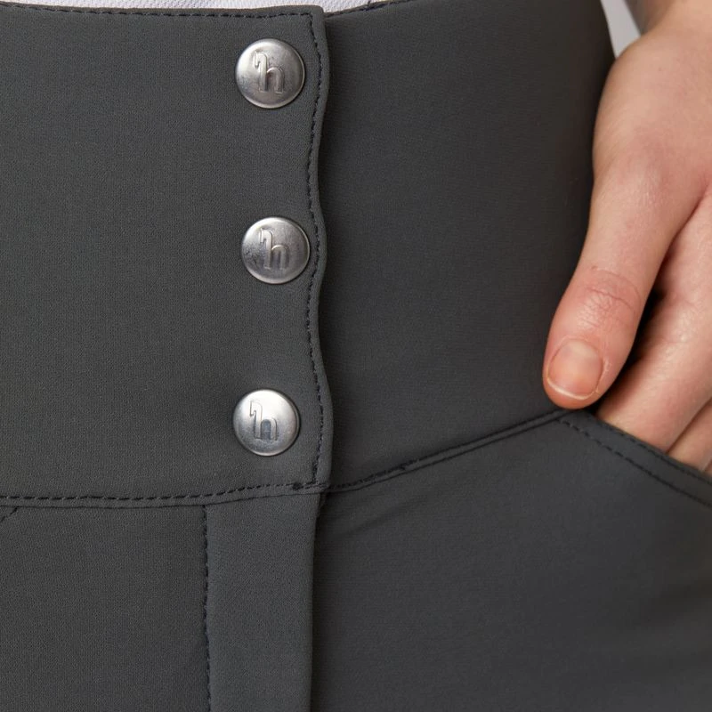 The Horze Women’s Desiree Silicone Grip Full Seat Breeches feature a trendy check silicone pattern printed directly on the full seat without a separate leather seat. The classic Desiree is now offered without belt loops for a clean, sleek appearance. The high waist and breathable bi-stretch fabric make them a pure comfort to wear. These high-quality breeches will retain their shape while repelling dirt and moisture. The updated Desiree is made with fabric that includes UPF 50+ UV protection. Additional features include two front and two rear pockets, along with an eye-catching logo patch at the back waist.