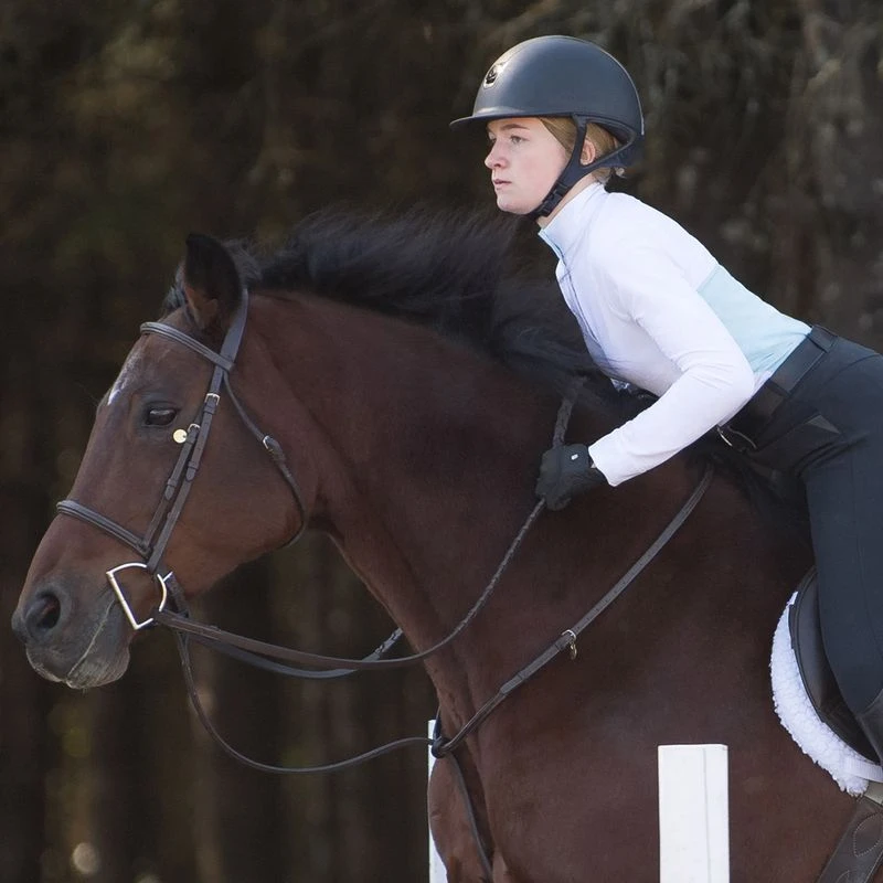 The Ciara IceFil Show Shirt combines comfort and style to ensure your child performs at her best during competition. Ventilation from lightweight mesh underarm and center back combined with cooling IceFil technology reduces body surface temperature by up to 5 degrees, keeping her cool and dry. The fun pop of color keeps a low profile under show coats and allows your rider to be stylish, yet show ready all summer.