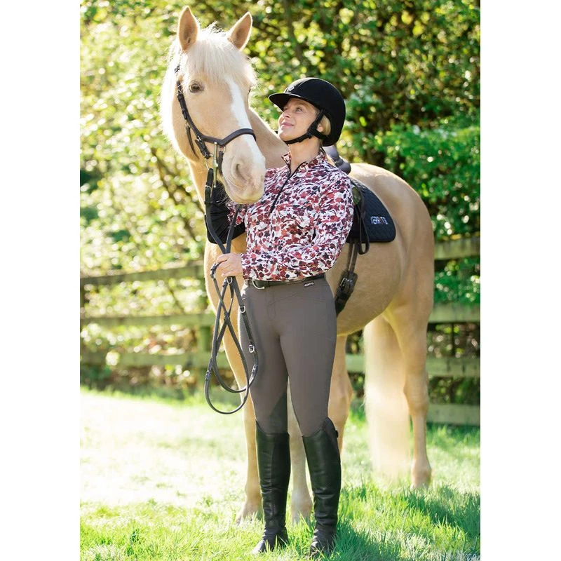 Durable, stretch-woven Dynamic Extreme fabric provides flattering coverage while shedding dirt and light rain to help keep things clean and professional. Two-snap zip fly and streamlined front pockets add sophistication for a breech elegant enough for the show ring and built to stay that way through daily use. GripSoft knee patches add supple grip.