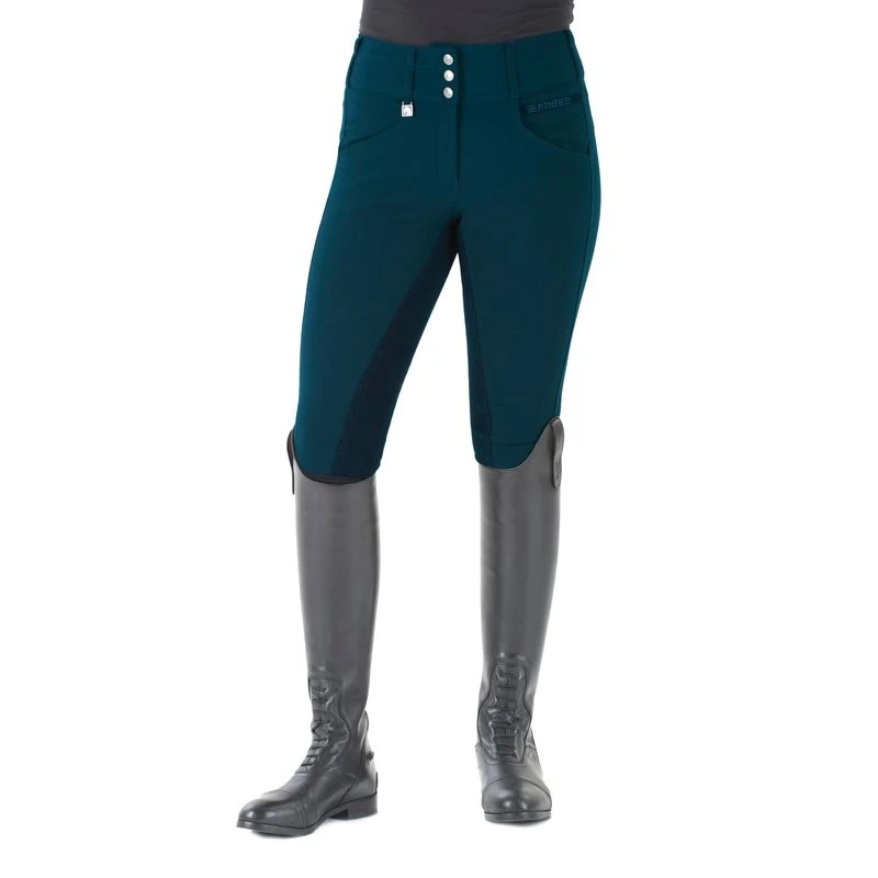 The fabric in the Romfh Champion Full Seat Dressage Breech is a real work horse. Eros, is a 100% micro-fiber fabric which is tough yet soft and cool. Even on the hottest day you will feel dry and comfortable. The Champion also features Curve Fit, a special cut to reduce any gaping at the back waist, nipped in at the waist and cut fuller through the seat and thigh. Perfect for shapely girls! 3 button high-rise, lightweight woven with stretch ankle.